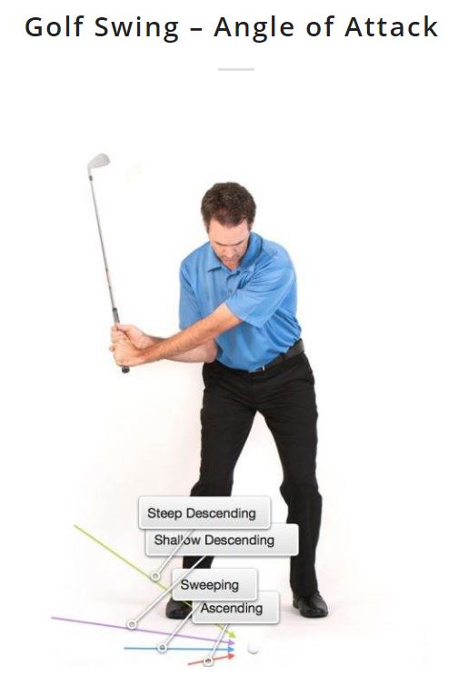 When we say that the angle of attack is steep. This means that the club is coming down sharply onto the ball. When we describe the angle of attack as being shallow, the club is traveling more along the ground as it descends into impact.