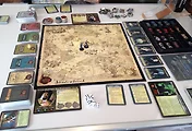 전형적인 덱빌딩 게임이다. 도미니언? 그 게임과 비교과 되기도 한다. 개인적으로는 도미니언은 별루 좋아하지를 않는다. 이유는 테마성이 전혀 느껴지지를 않아서 재미가 없었다. 하지만 이 게임은 테마와 시스템이 아주 잘 녹아 있는것 같다. 참고로 마리님이 오셨다가 아들 주라고 선물로 주고 가셨다. 아차차 지난 후기에 설물까지 줘서 고맙다는 인사를 않했네.. 쩝! 있다가 적어 놔야지. 여튼 이 게임을 이날 모임을 둘이서 가볍게 시작했다. 요정이 이런 저런 게임을 접할 수록 업그레이드 된느듯~~~. 내가 졌다. ㅡㅡ;;; 초반 에러플이 있었는데, 베이스가 파괴가 되는데 우리는 파괴없이 진행을 하다가 에러플인걸 뒤늦게 깨우치고 계속 플레이를 했지만 이미 때는 늦었고... ㅎㅎㅎ