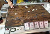 맵이 한 방향으로만 다행히 잘 나와주었다. 탁자가 작은건 아닌데 이 게임의 단점아닌 단점이 맵 타일이 너무 크다는 것이다. 그나마 탁자 끝에서 교차길이 나오는 바람에 탁자를 벗어나진 않았다. 그 와중에 아들은 서서히 혈거인들을 대거 출현 시키고 있었다.