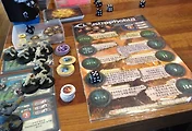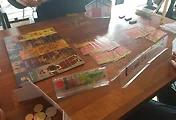 상트~~~ 예전에 두어번 해봤었는데 이날 간만에 해서 그런지 감을 완전히 잃었다. 매 라운드 마다 적당한 금액과 미래 수입을 생각하면서 구입하는 것이 관건인데, 이 파악을 내가 잘 하지 못해서 거의 매 라운드 돈이 딸려서 큰 이득을 못봤다. 이 게임도 시스템은 복잡지 않지만, 서로서로 비슷한 전략을 가지고 있다면 상당히 잼있게 할 수 있는 게임이라 할 수 있겠다. 앞으로 어떻게 전개가 될 것이며, 뭘 사야 나에게 더 큰 이득을 가져다 줄 지 모른다면, 매 라운드 답답한 플레이가 될 수 밖에 없을 것이다. 배운다 생각하고 한 번 이래저래 해보고나서, 그 다음 판에 승부를 걸어보는게 좋을 것이다. 첫술에 잘 안되고 꼴찌를 했다고 해서 실망하지 말자. 이 게임은 룰을 알고 흐름을 아는 자에게 첫 판으로 이기기는 매우 힘들다. 두어번 해보고 진정한 자기 전략으로 도전해 보는것이 좋을 것이다.