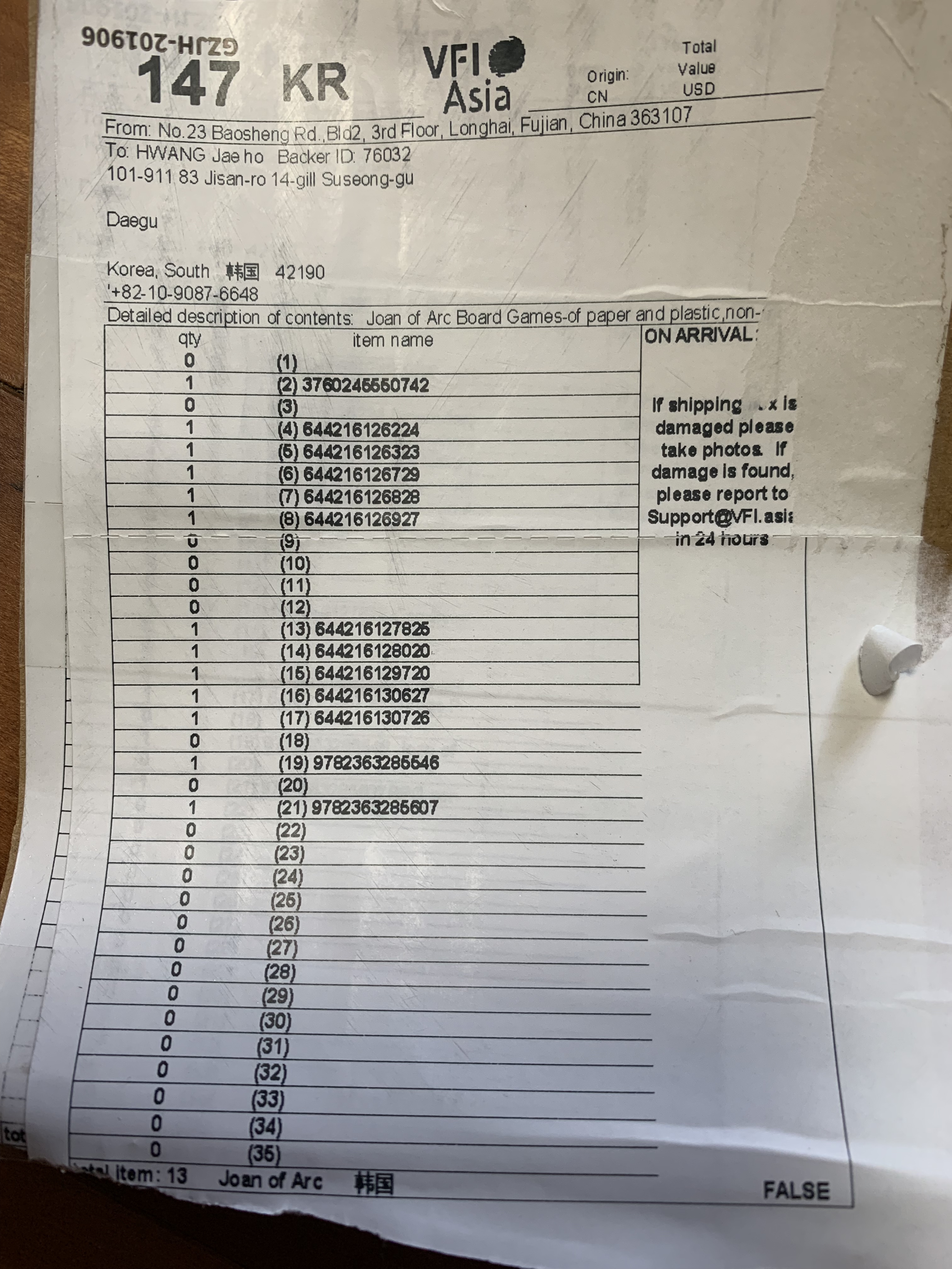 아래는 택배 배송 구성물 목록인데~~ 숫자로만 되어 있으니 뭐 제대로 다 왔는지도 몰겠다.