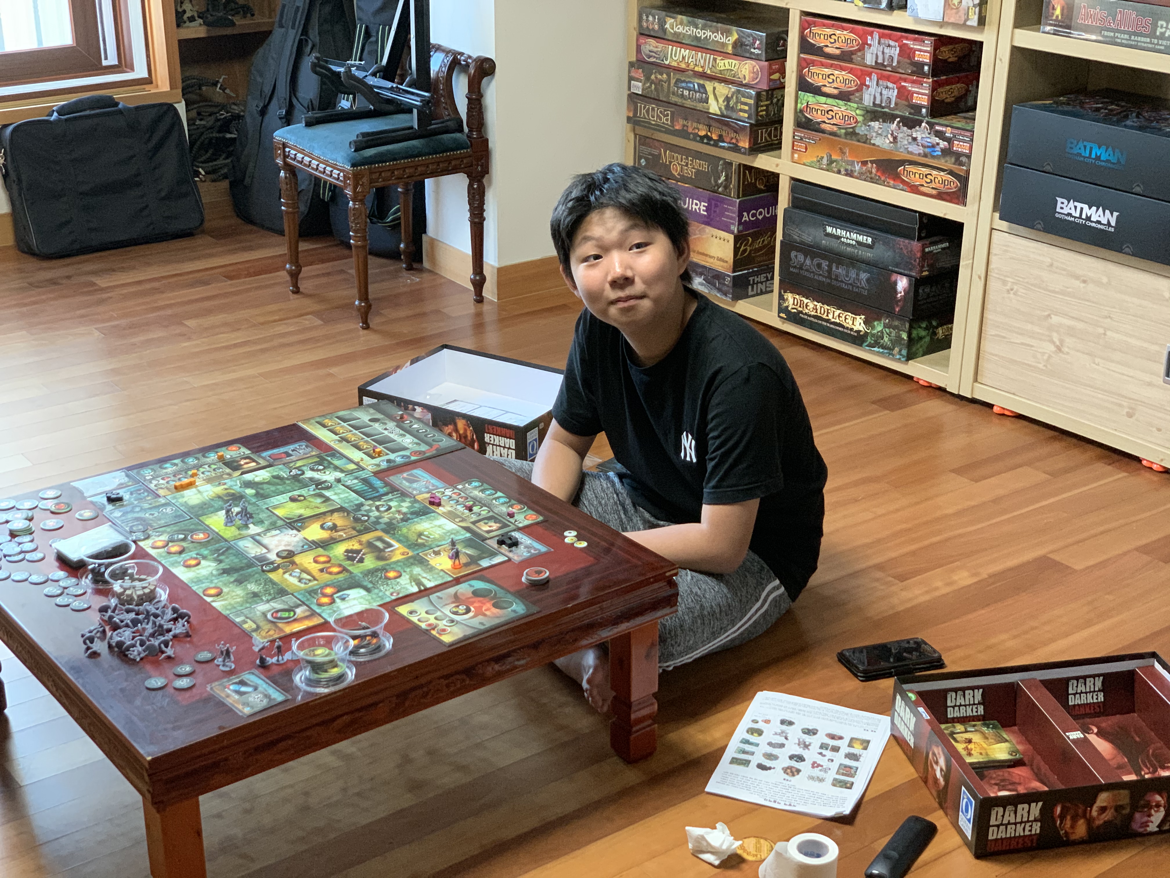 번역도 끝났겠다~~~ 드디어 아들과 가볍게 한 판을 해봤다. 룰북에서는 2인 플레이시에 1인당 2개의 캐릭터를 가지고 하라고 되어 있지만, 일단 룰을 익히는 정도의 플레이를 원했기에 캐릭터는 1개씩만 가지고 했다. 아들에게 룰을 자세히 설명하고 플레이하기에는 너무 오래 걸릴꺼 같아서 최소한의 할 수 있는 액션만 설명해주고, 진행중에 필요한 룰을 설명하며 플레이를 진행했다.