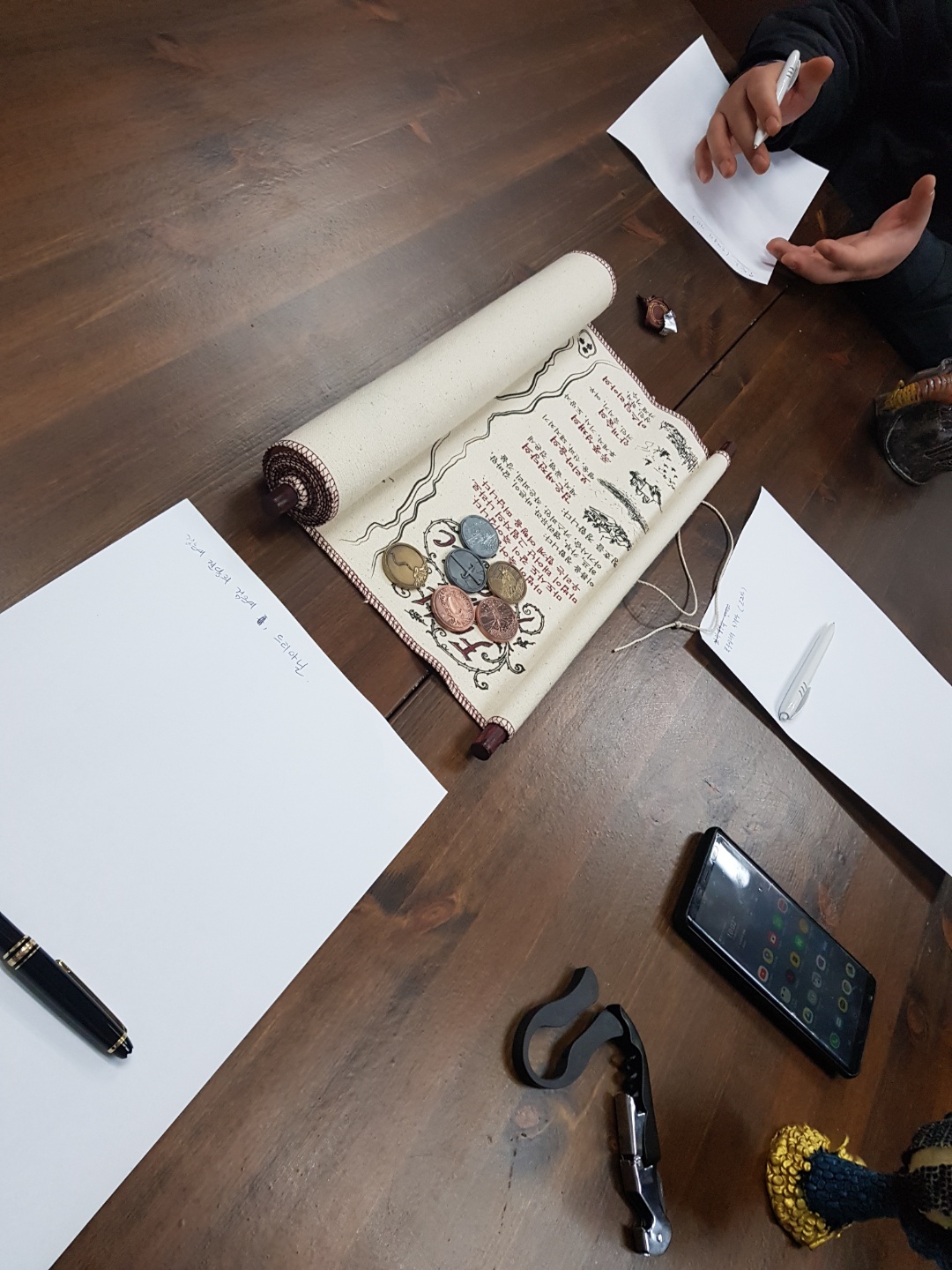 첨으로 누군가와 TRPG를 해봤다. 성열님의 소개로 해봤는데... 아~~~역시 적응이 필요한 게임이다. 스토리에 따른 나의 이야기를 만들어 간다는게 그리 쉬운일은 아니자나? 어색하고, 간지럽고~~~ 하지만 이 게임을 할 때즘엔 우린 알딸딸~~~ 저녁을 먹으면서 소주도 먹었는데, 이 게임을 3명이서 하면서 와인도 2병을 해치웠다. 아주 맘에 드는 바람직한 음주문화~~~! 더더욱이 술을 다들 좋아 하는거 같아 더 맘에 드는...뭐 그런~~ ㅎㅎ 술한잔 먹고 이야기 삼아 놀기에는 아주 딱인거 같다!