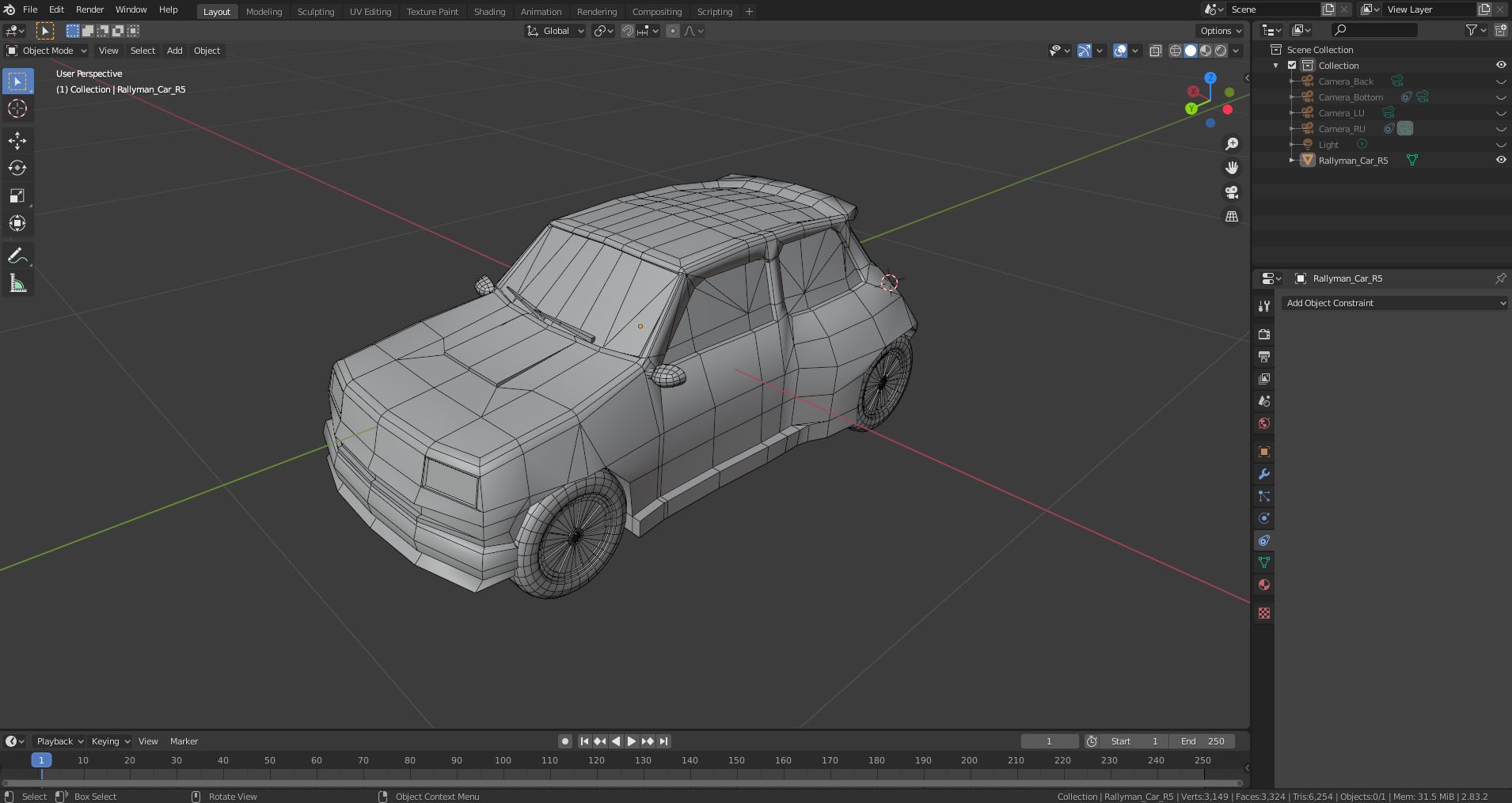 1. Blender 3D 자동차 만들기 또는 다운로드 받은 자동차 데이터 1.5메가 내외로 수정하기.