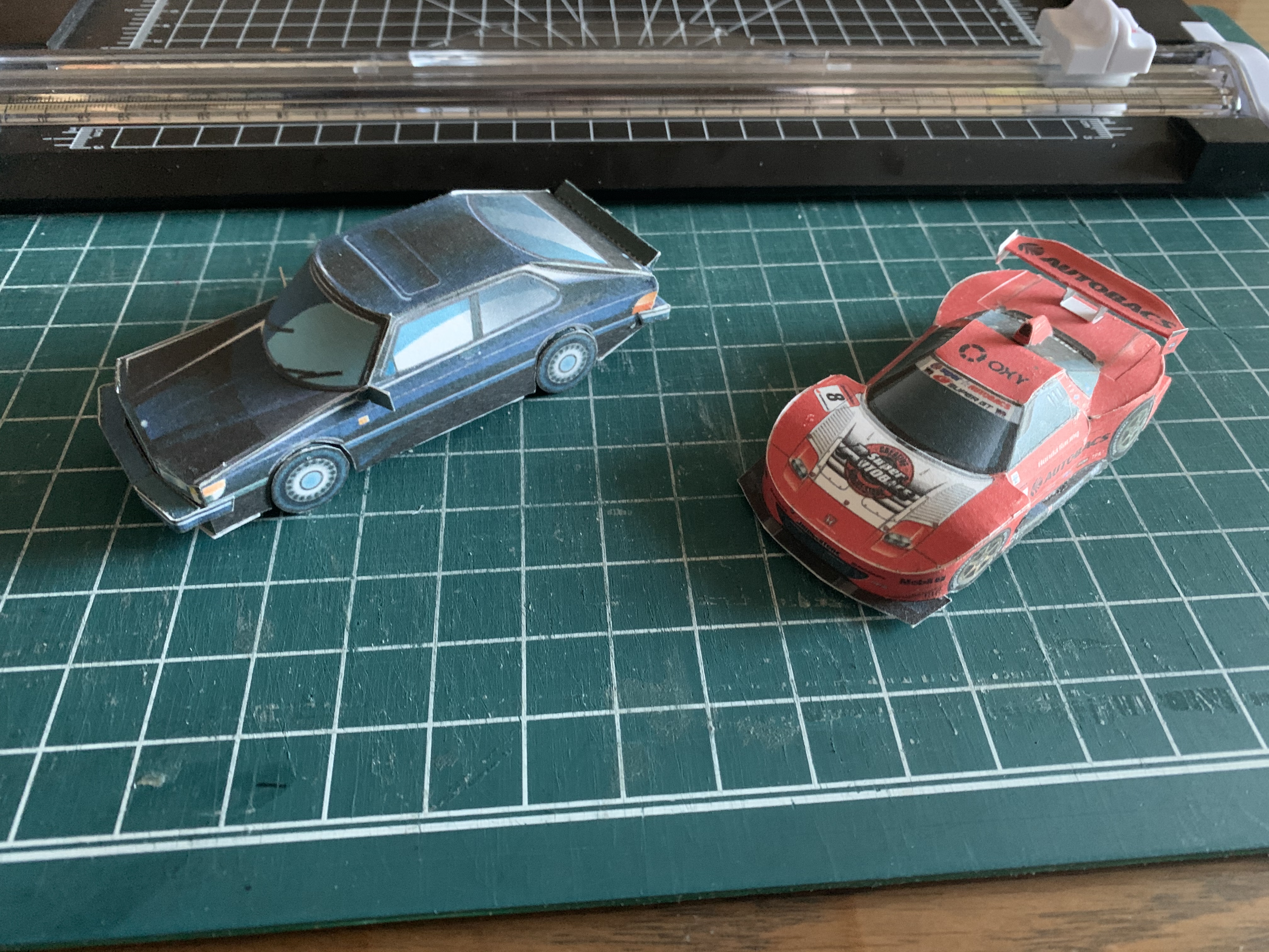 구글링을 하면 무료로 다운받을 수 있는 페이퍼크래프트(종이접기) 자동차 디자인들이 많이 있다. 적당한거 골라서 열심히 접으면 된다. ㅡ,.ㅡ;;; 도화지에 직접프린트를 해서 오리고 접고 붙였다.