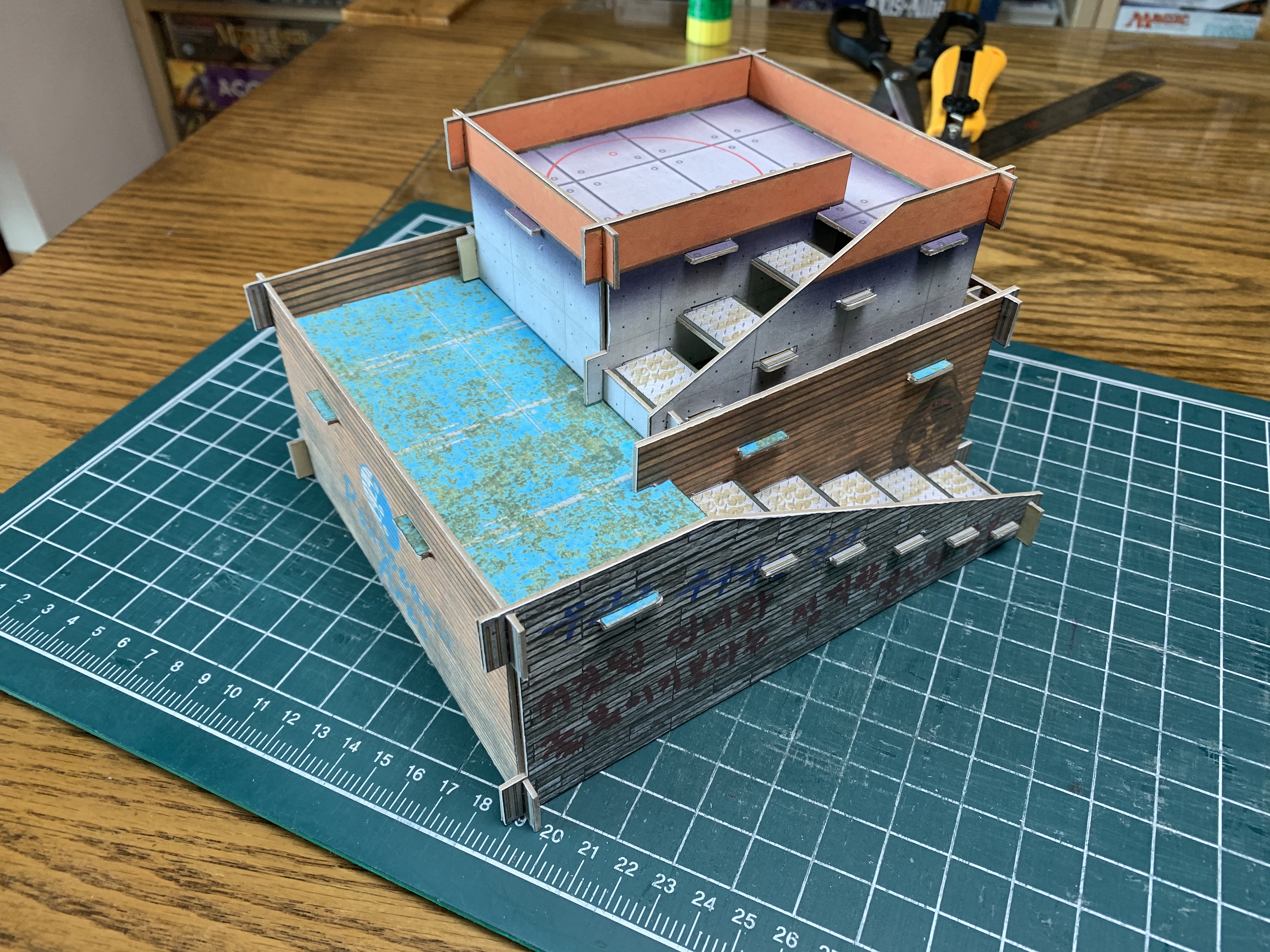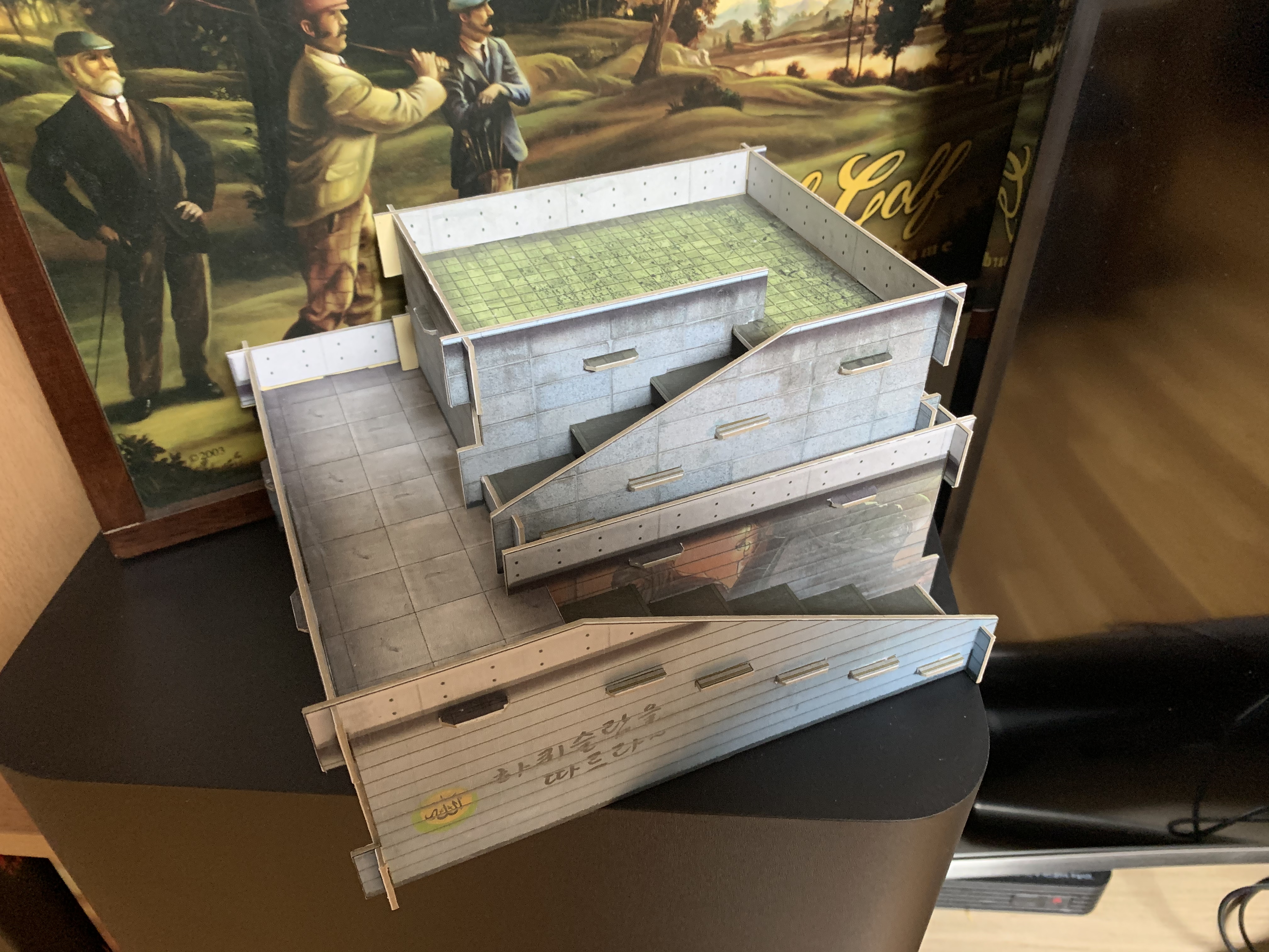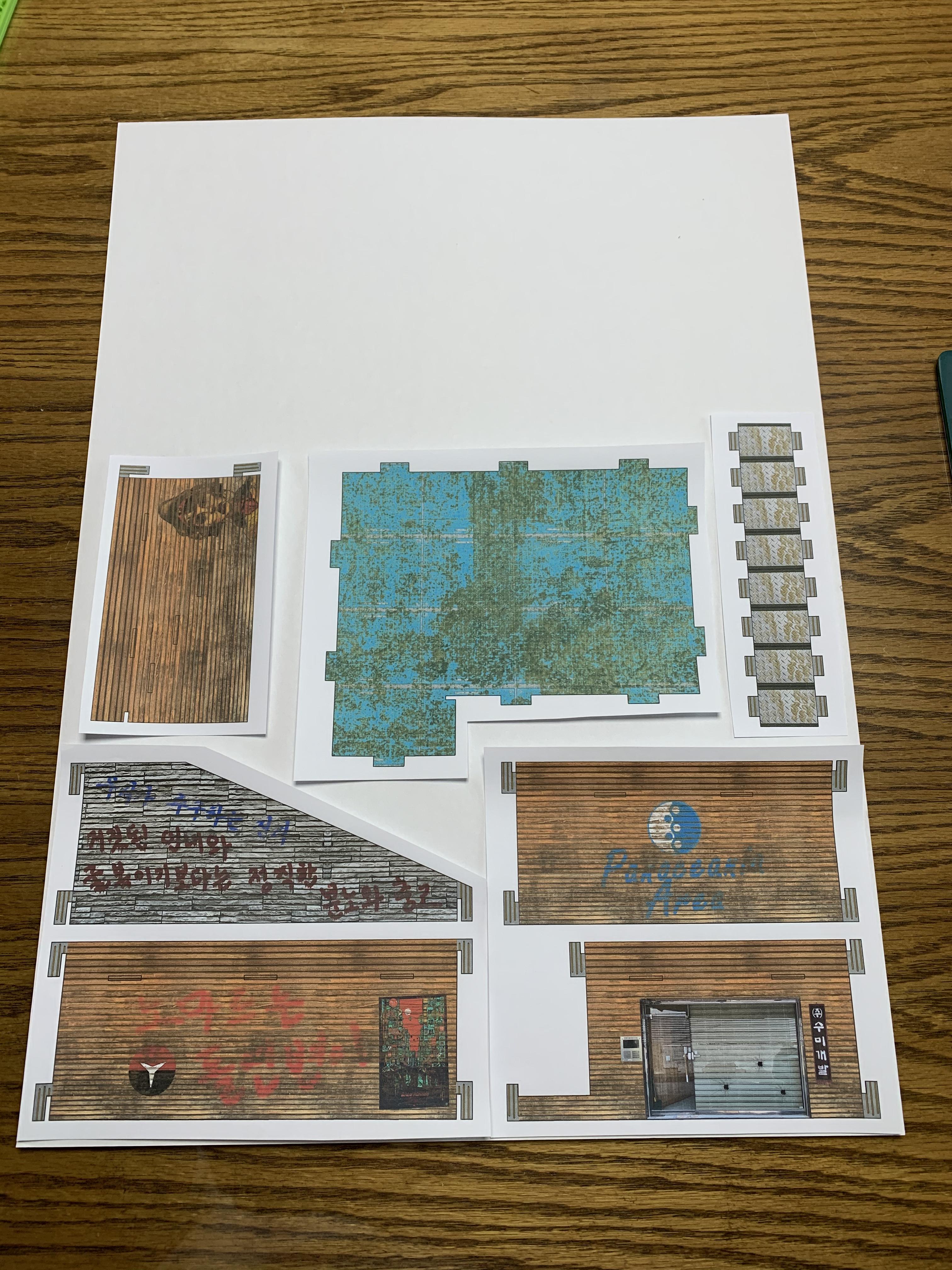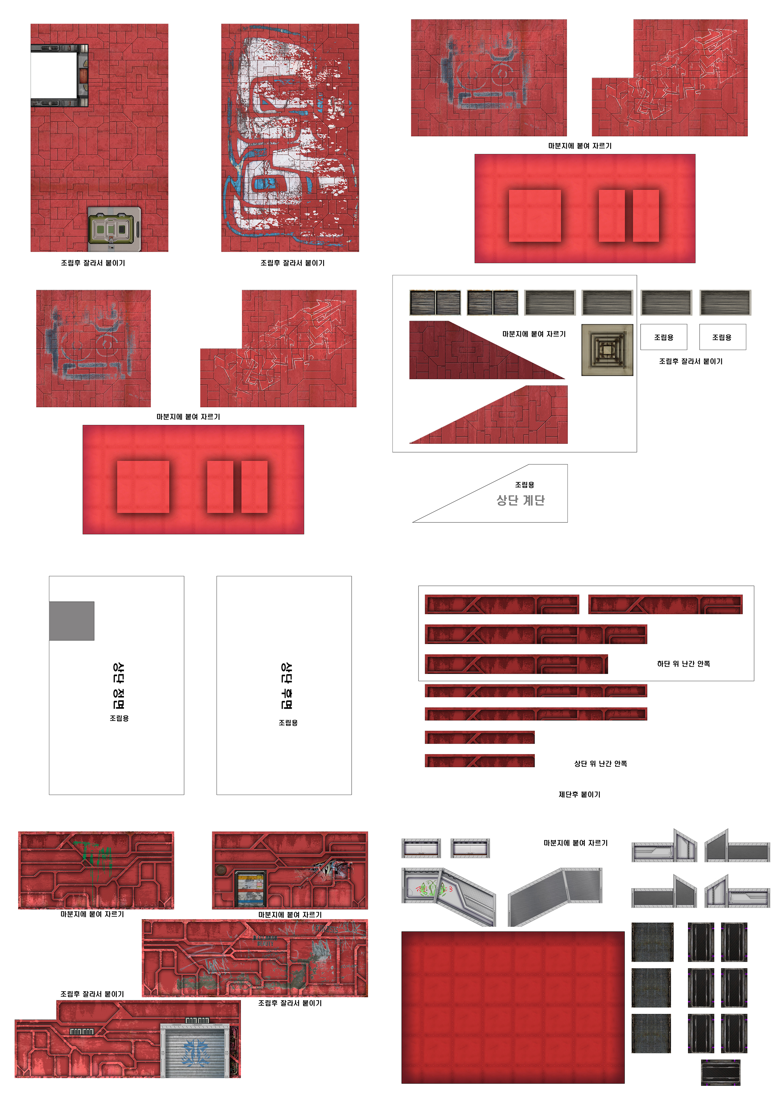 인피니티를 플레이하기 위해서는 건물들이 필요한데... 팔고 있는 제품들도 있지만, 한 번 만들어 보기로 하고 작업을 했다. 우선 3D로 디자인을 하고, 프린트를 위해서 포토샵에서 작업을 한 다음, 출력해서 하드보드에 붙여서 오리고, 자르고 조립해서 완성했다.