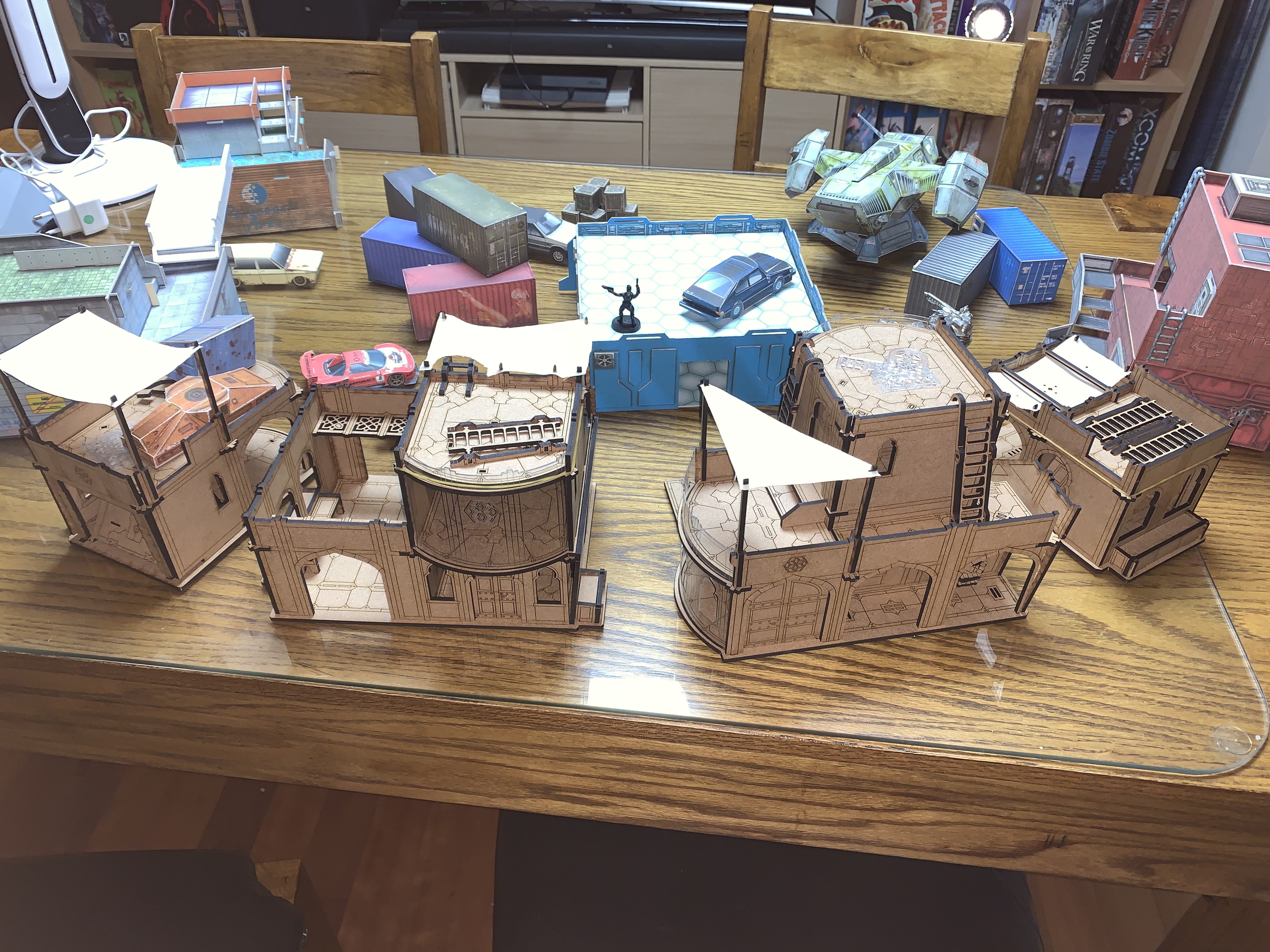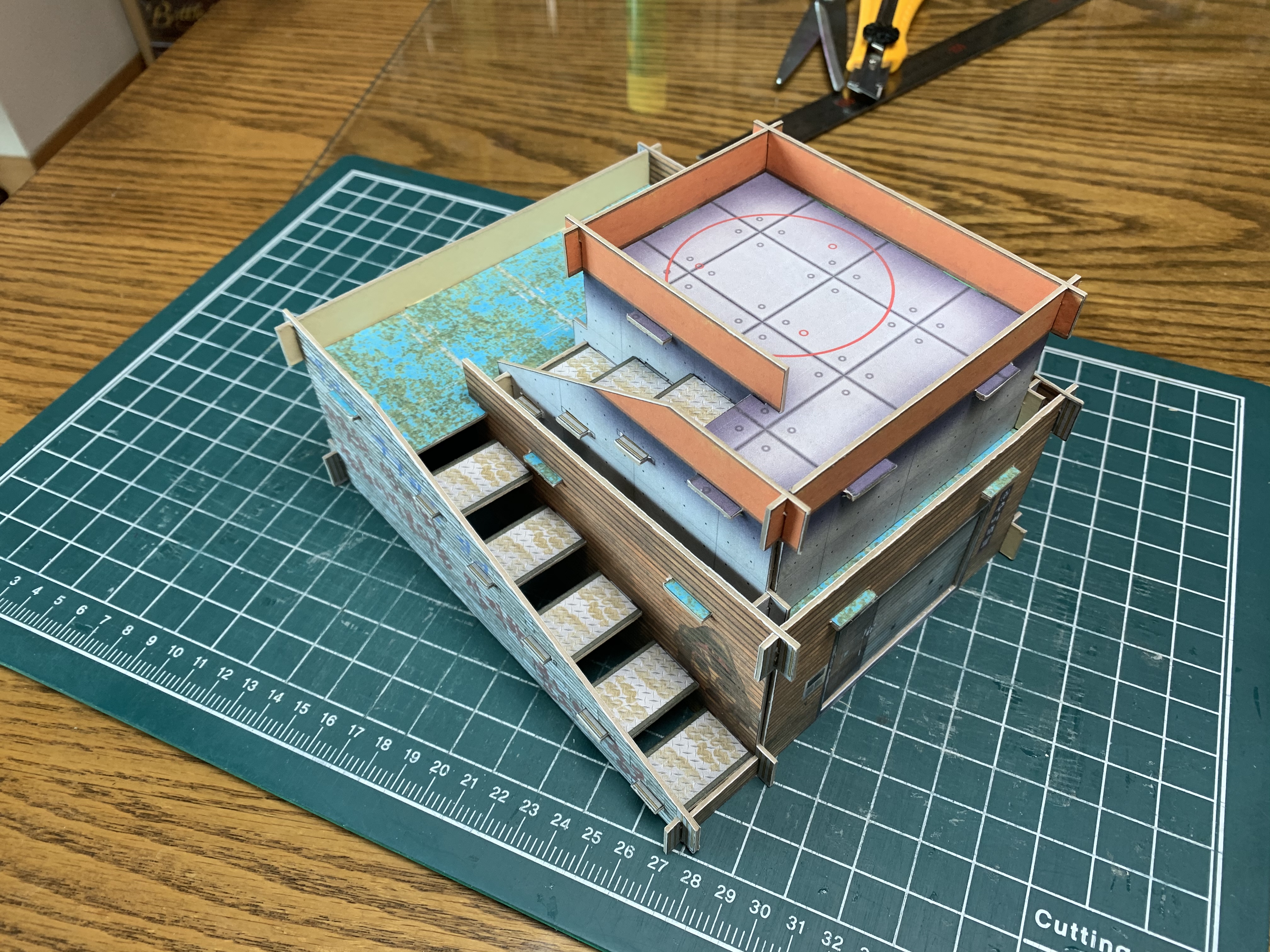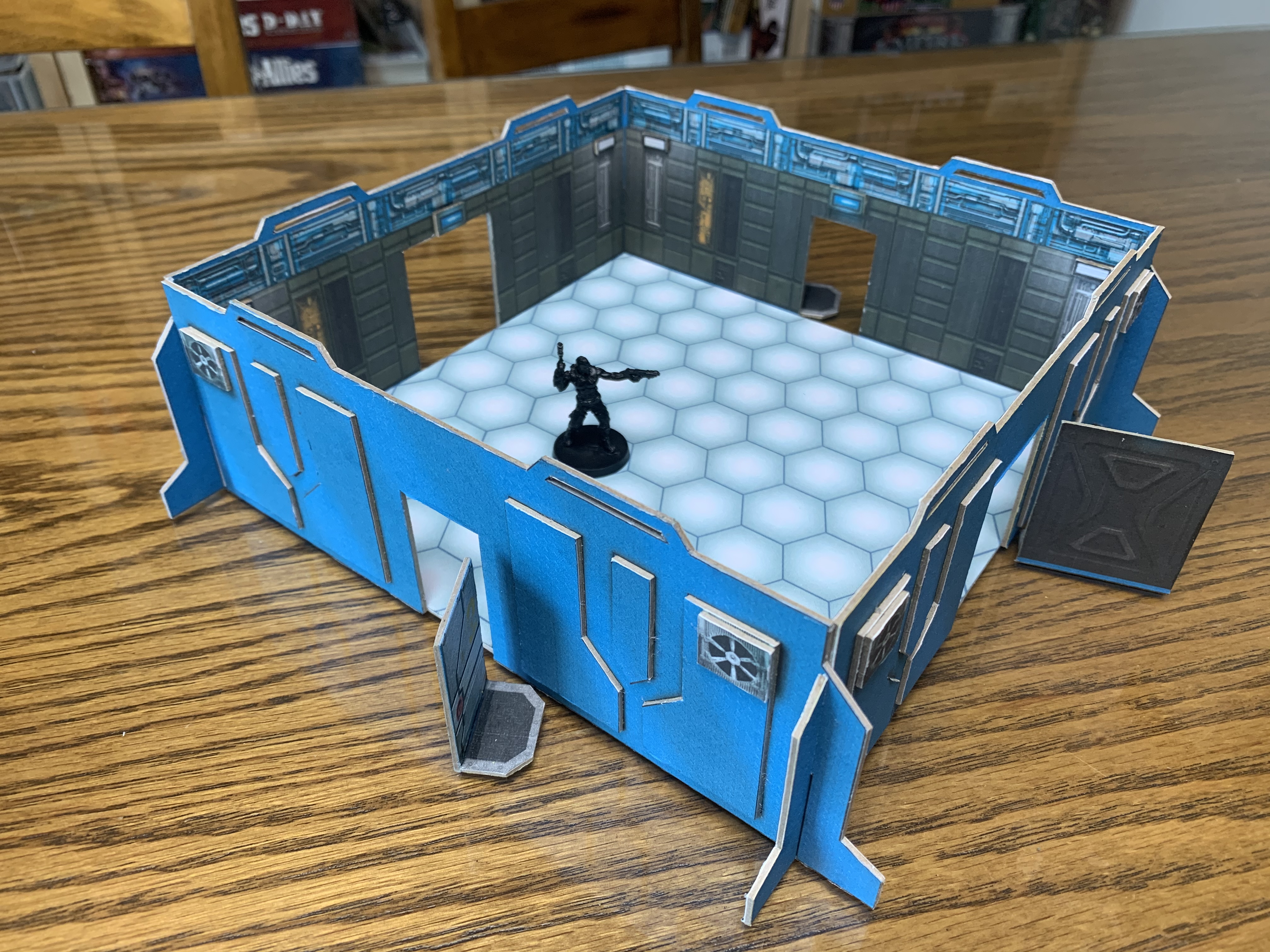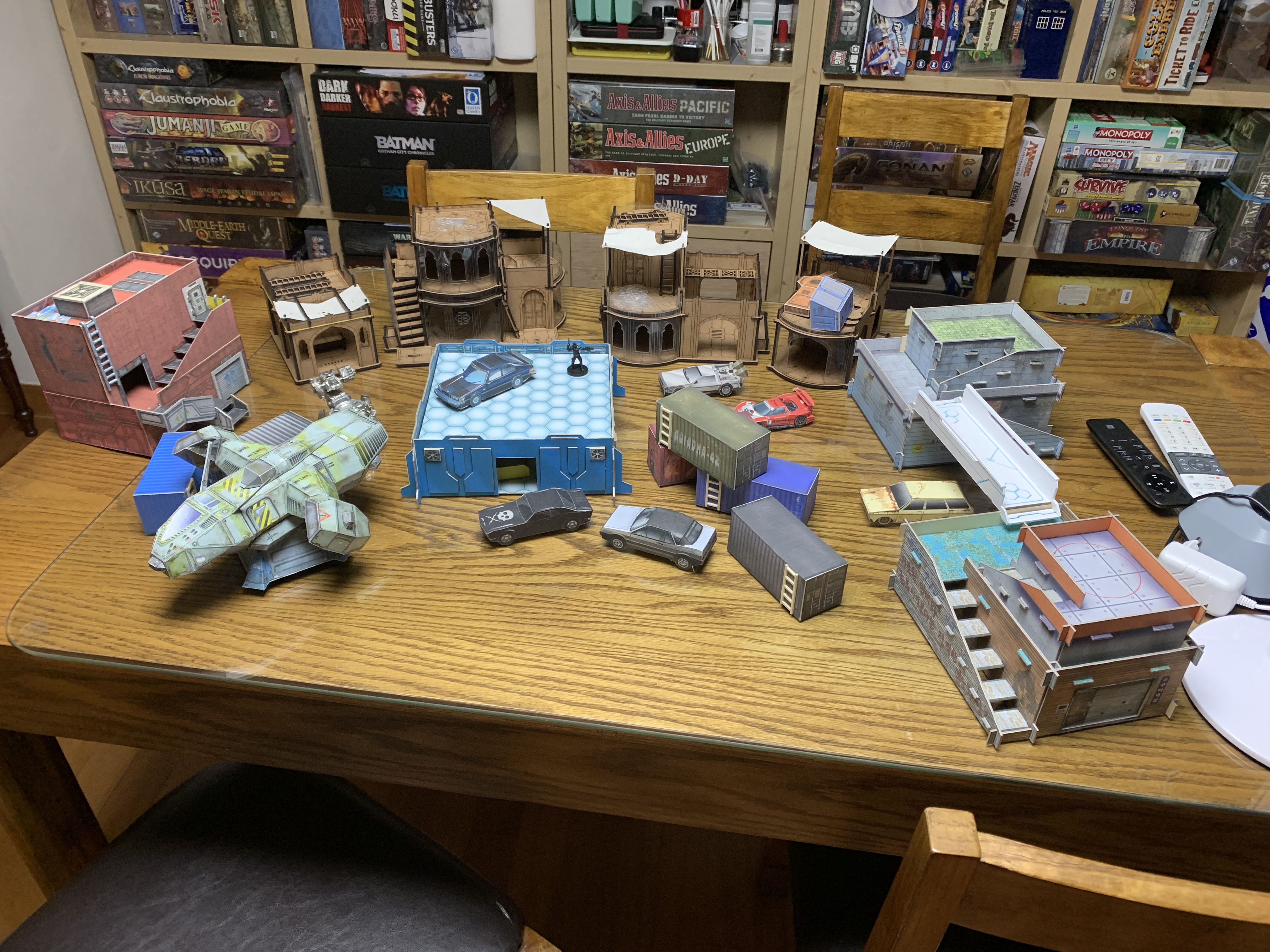 인피니티를 플레이하기 위해서는 건물들이 필요한데... 팔고 있는 제품들도 있지만, 한 번 만들어 보기로 하고 작업을 했다. 우선 3D로 디자인을 하고, 프린트를 위해서 포토샵에서 작업을 한 다음, 출력해서 하드보드에 붙여서 오리고, 자르고 조립해서 완성했다.