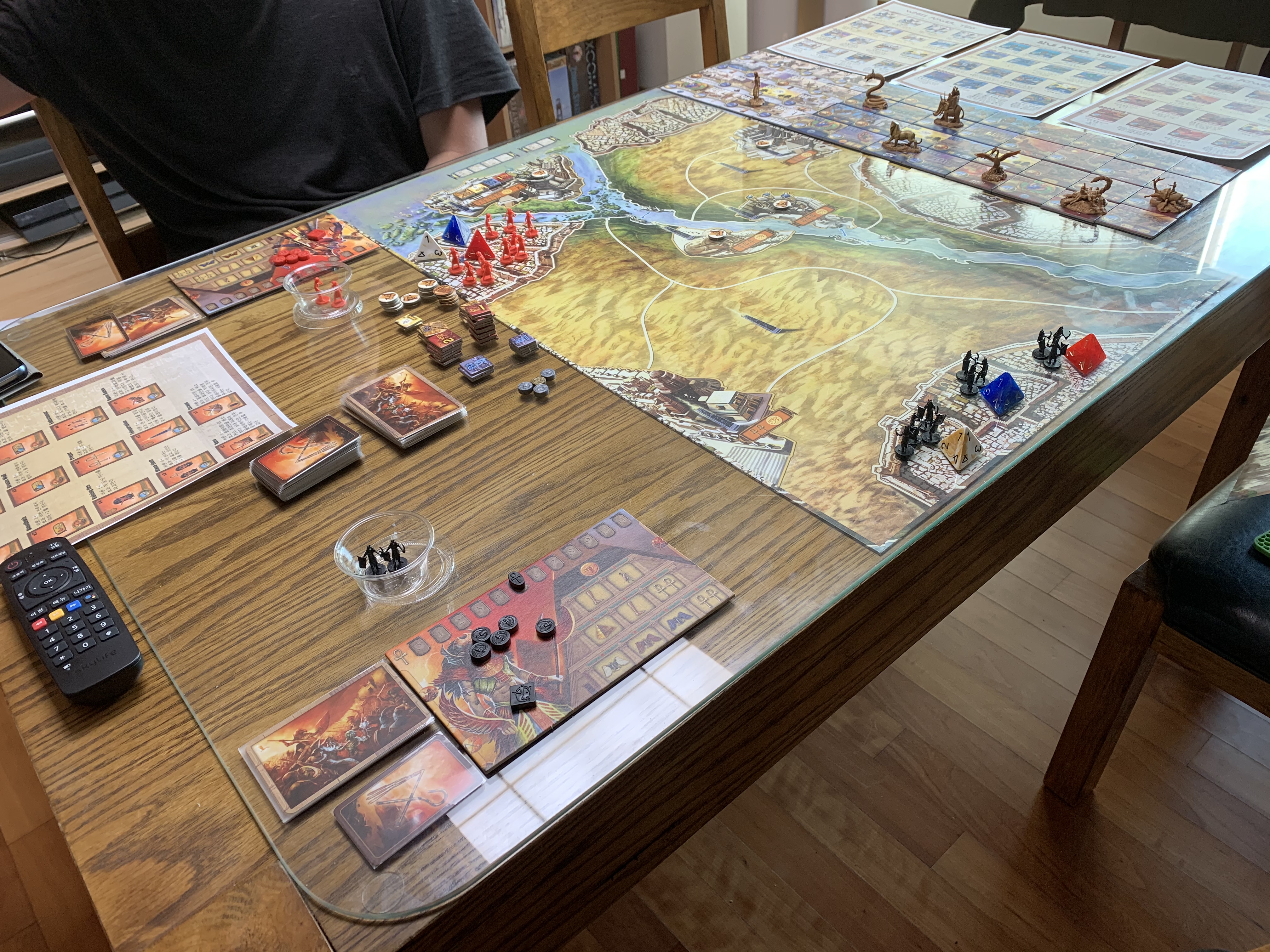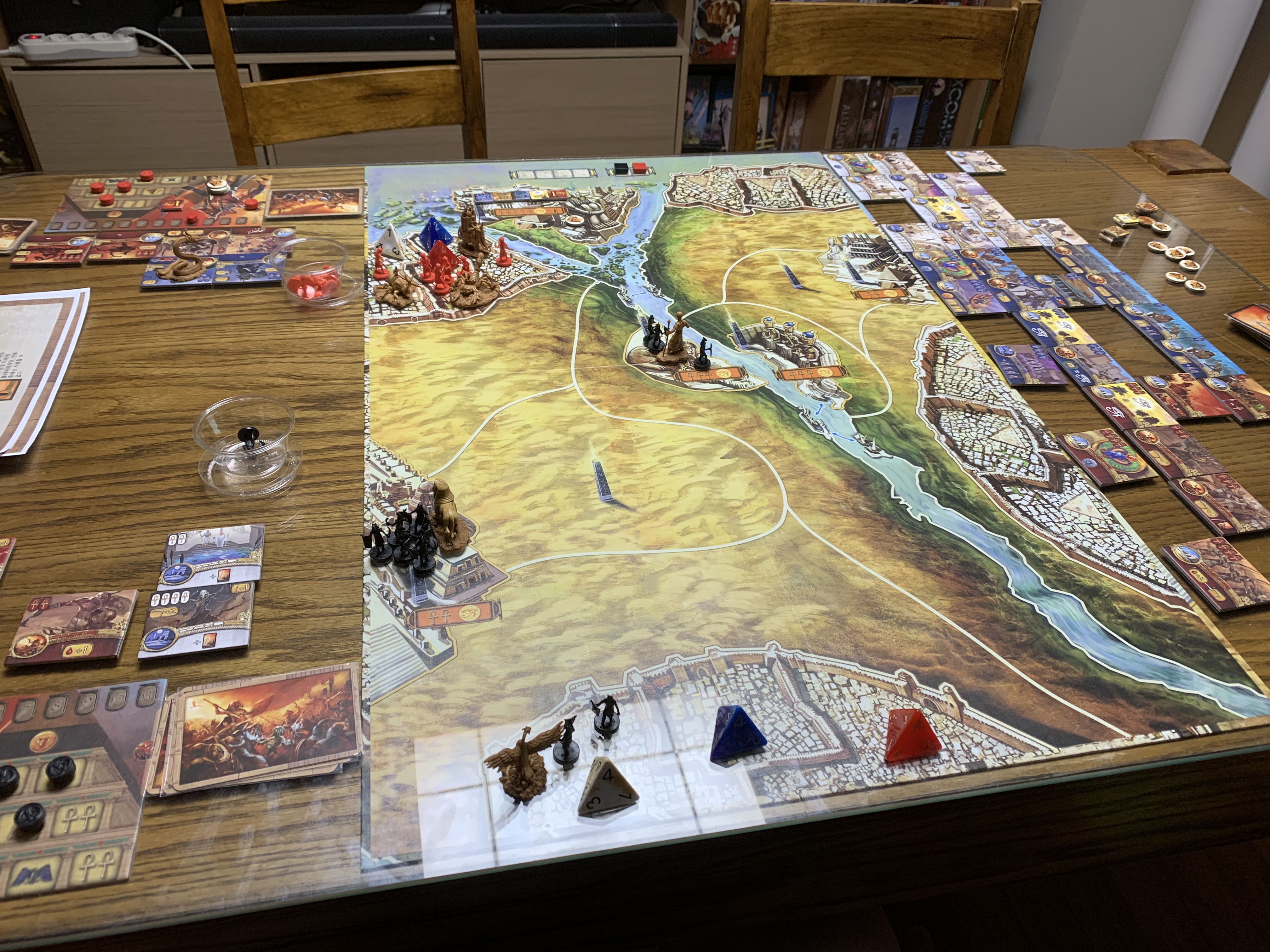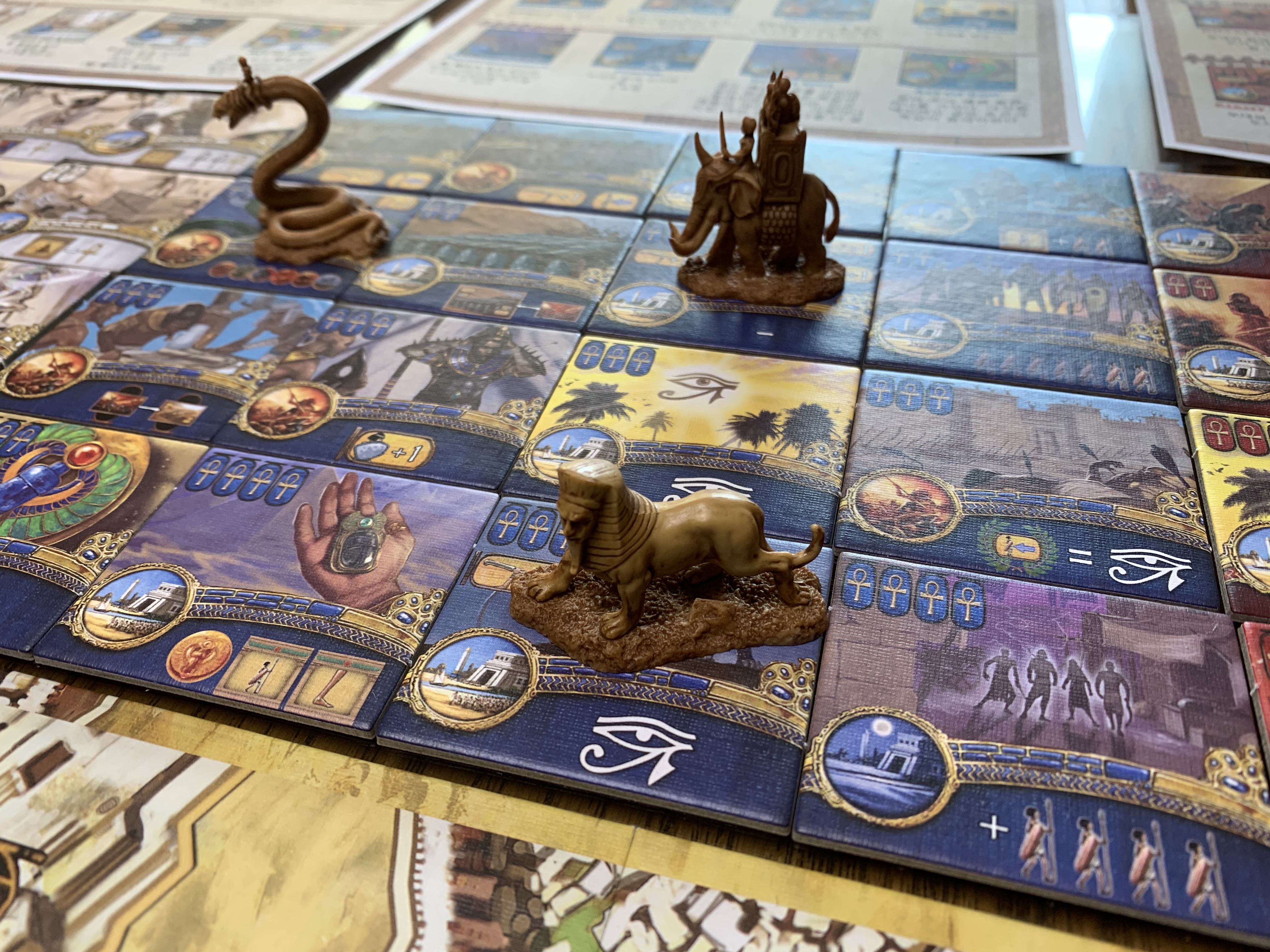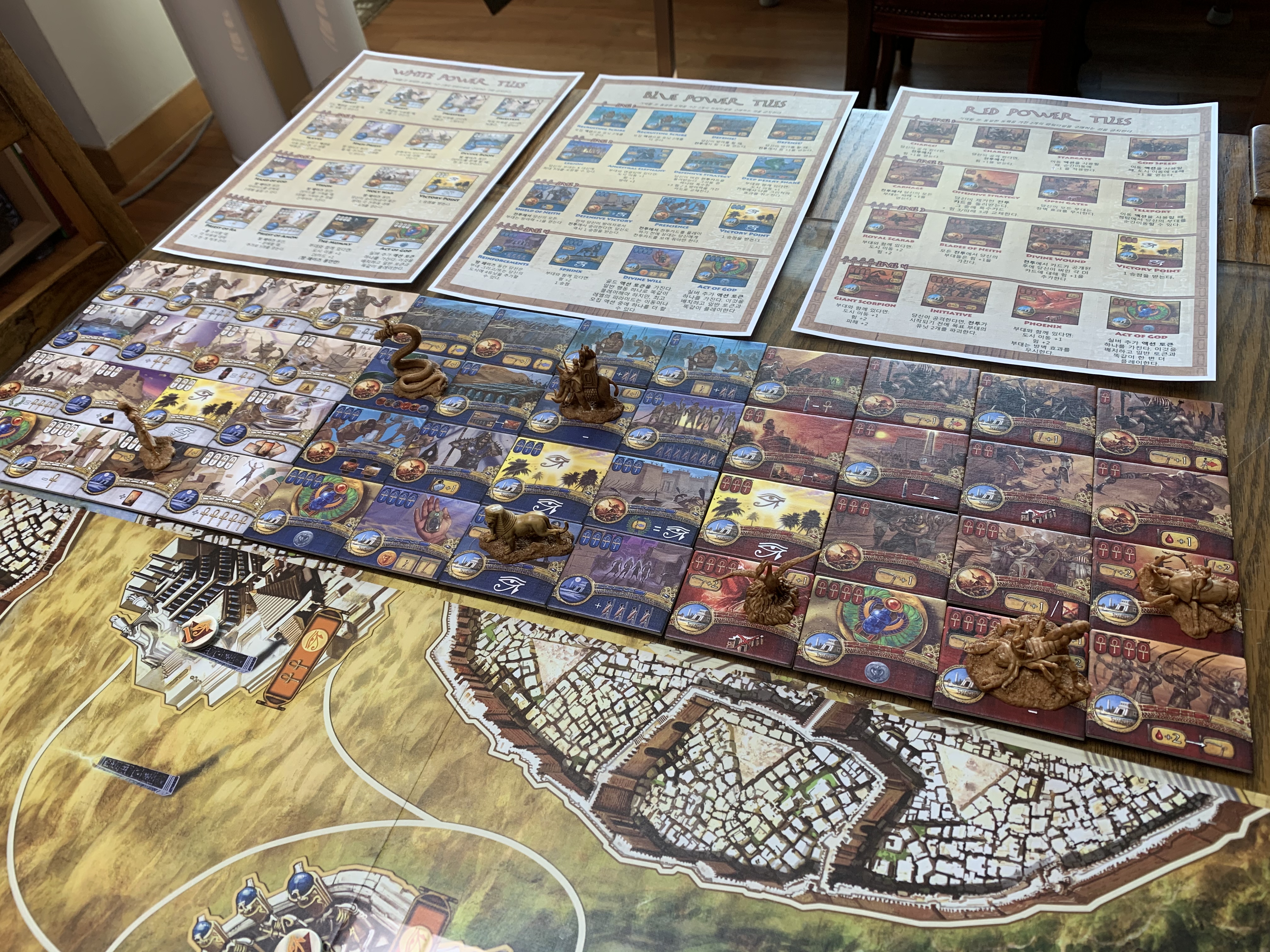 크리스마스를 기념하여 아들과 케메트를 플레이했다. 구입한지는 좀 오래 됐지만, 우선 순위에 밀리다 보니(사실 룰북 보기 귀찮아서) 이제야 플레이를 하게 됐는데, 주사위 굴림 요소가 없다. 주어진 6장의 카드로 전투를 치룬다. 셋팅 시 타일을 레벨별로 배치하는 것도 다소 번거롭긴 하다.