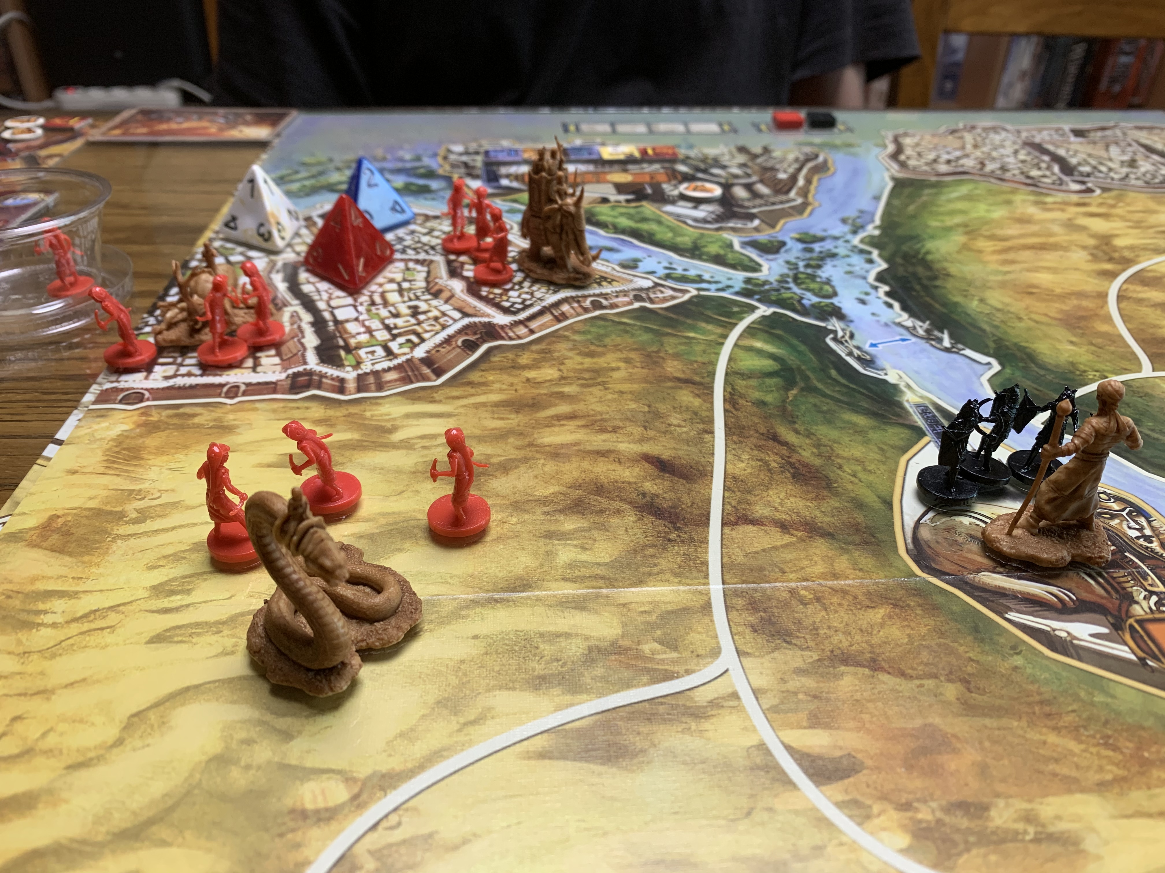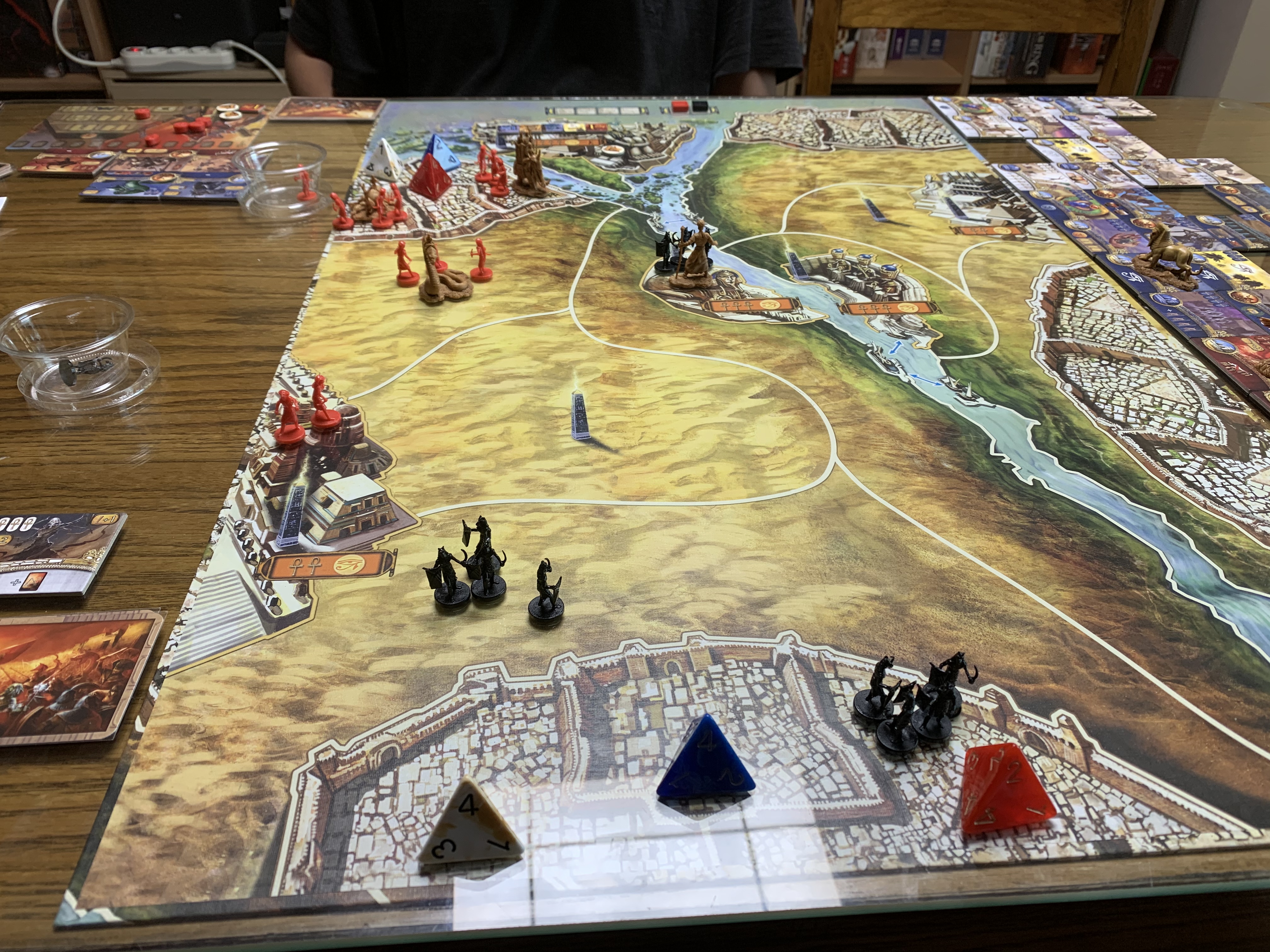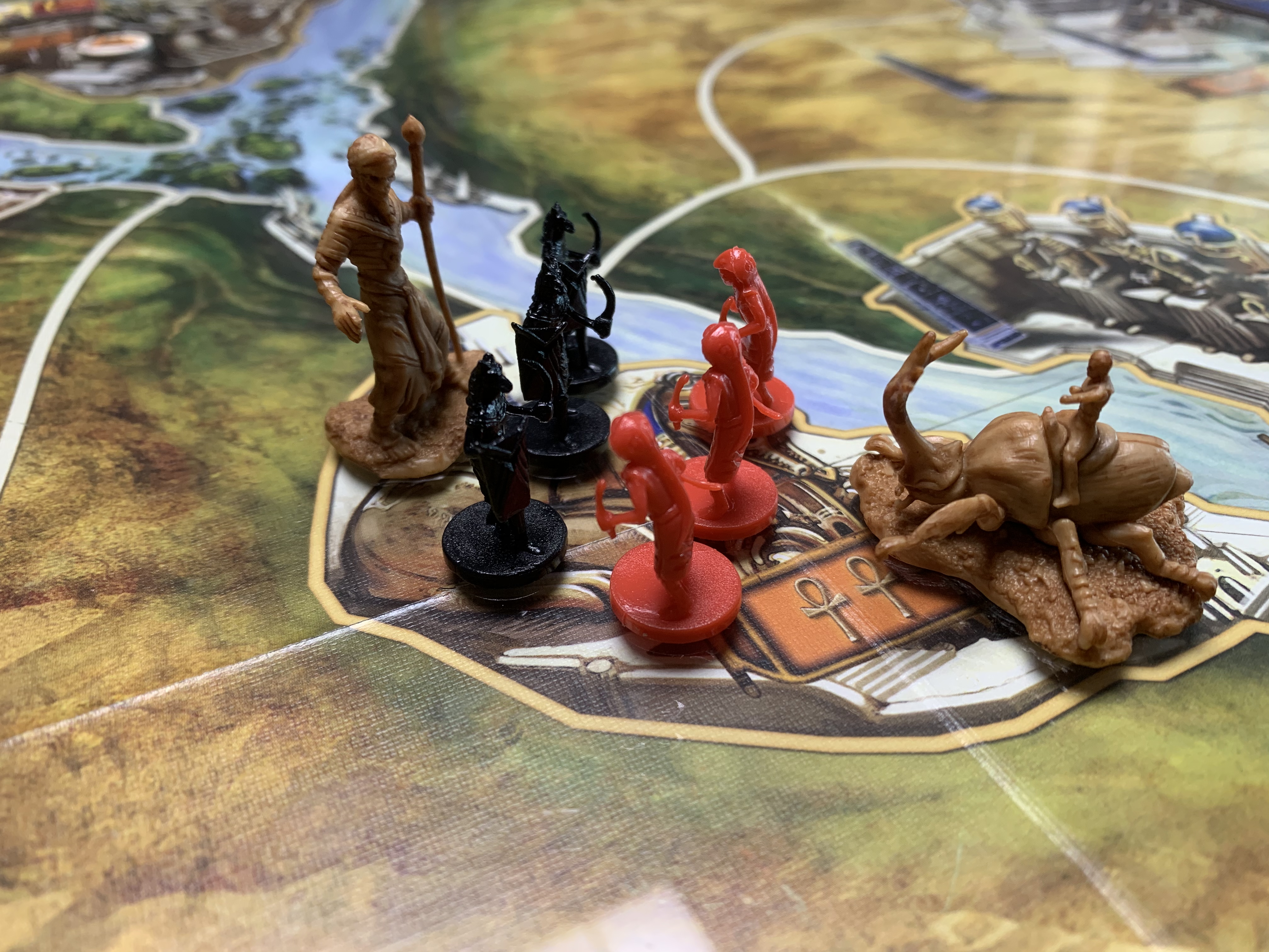 맵을 보면 지역이 몇 칸 나눠지지 않아서 금방 금방 이동하겠다! 싶었지만, 생각만큰 많은 이동은 이루어 지지 않았다. 기도 점수도 올려야 하고, 타일 구입도 해야하고, 간간히 이동도 해야 하고, 이러다 보니 많은 전투는 이루어 지지 않았는데, 아마 2인플이라서 더 그럴 수도 있겠다 싶다.