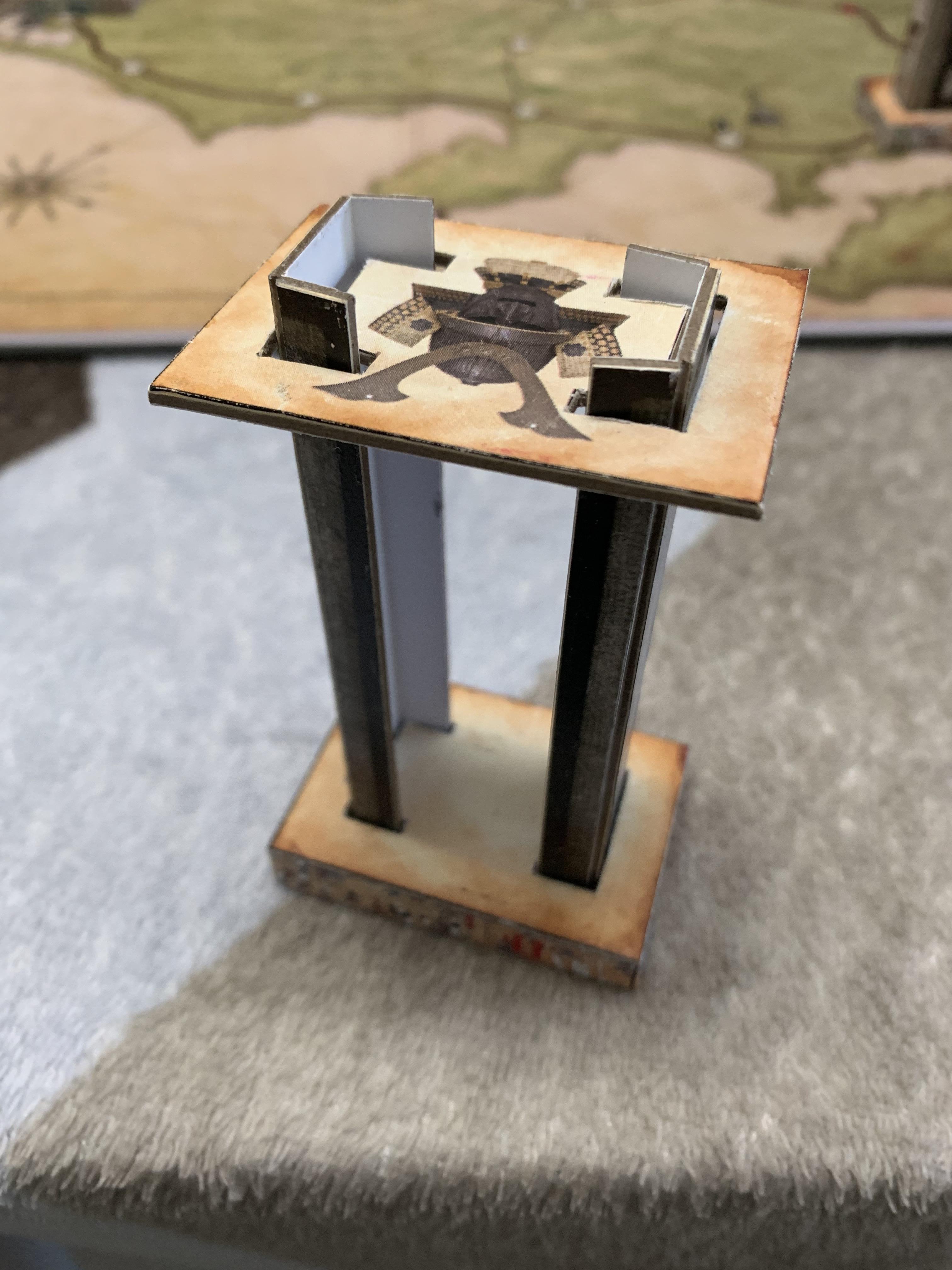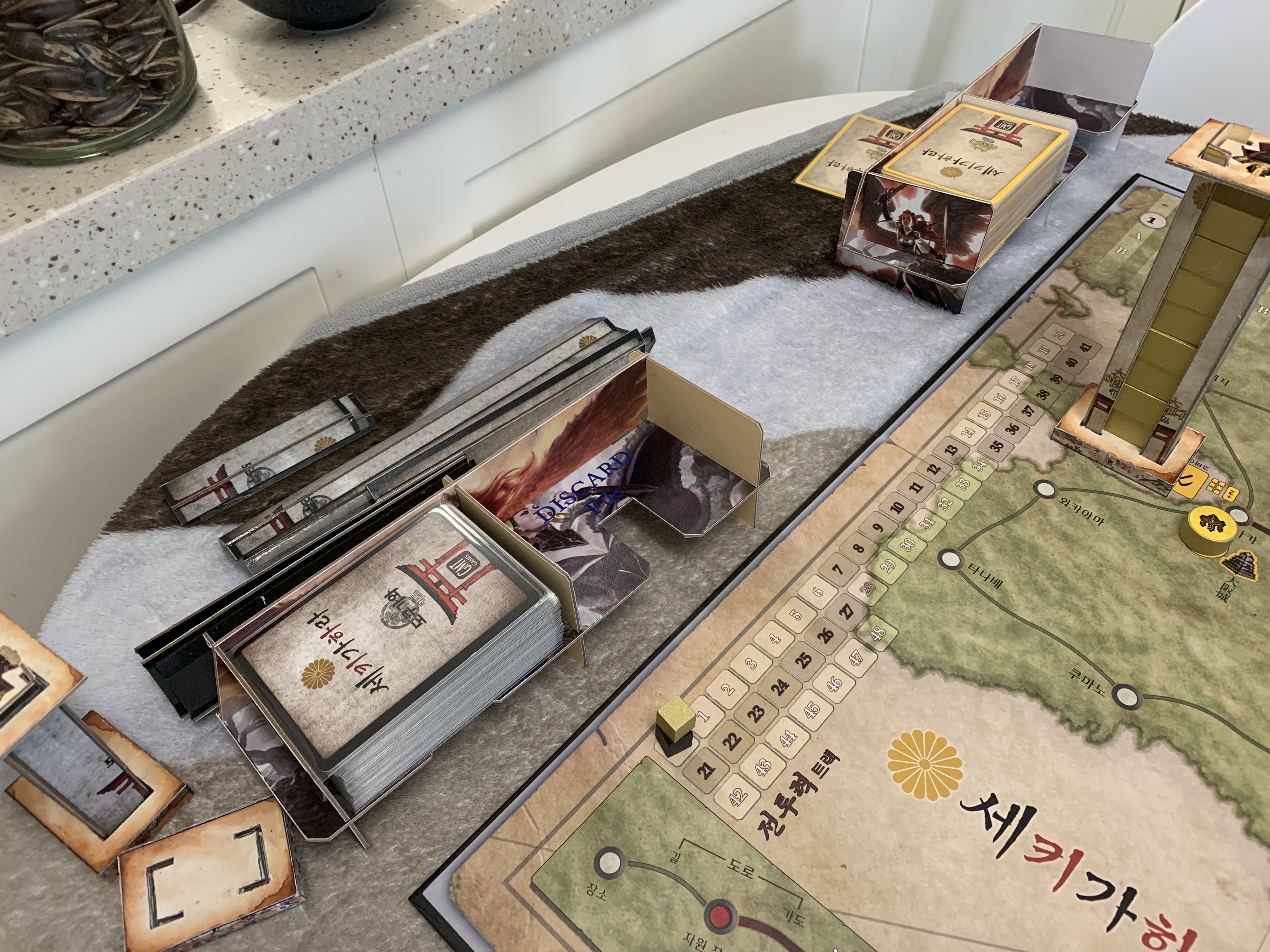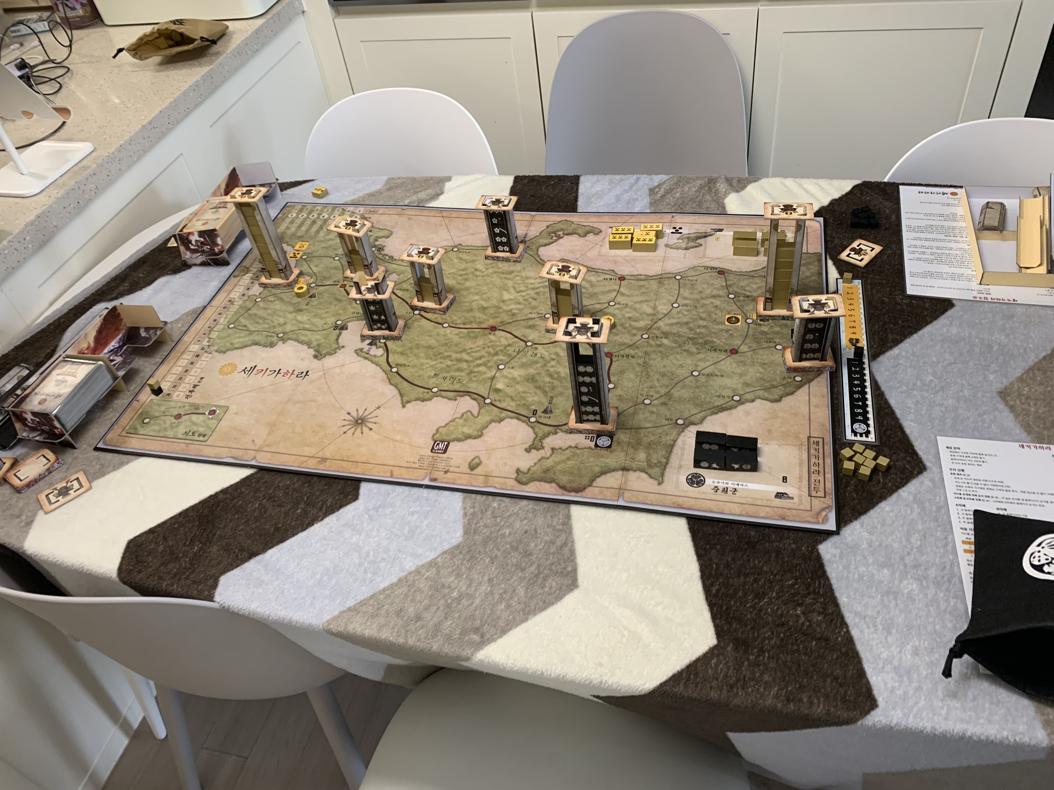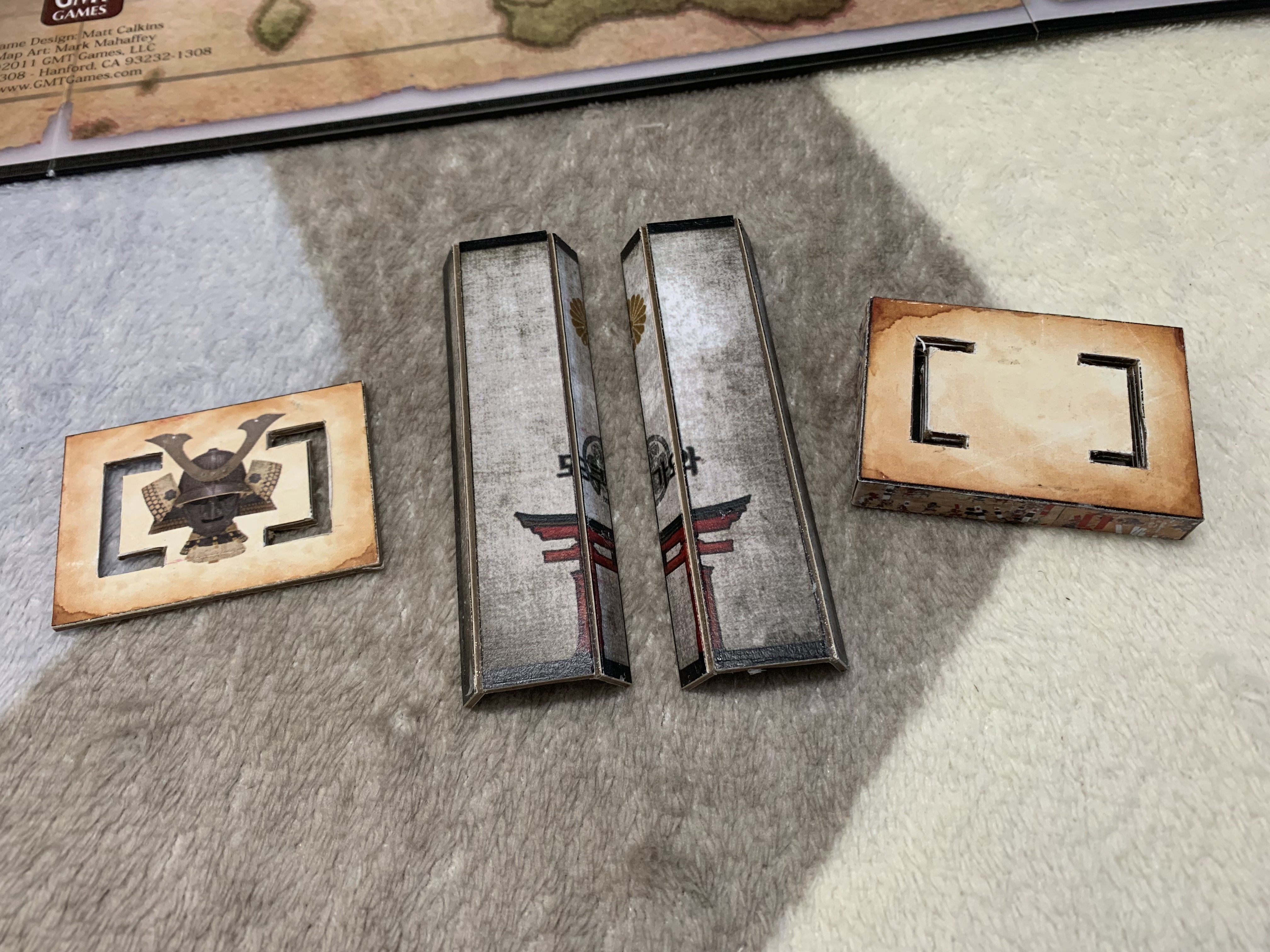 1600년 일본의 교차로에서 벌어진 세키가하라 전투를 다룬 블록 워게임이다. 다른 워게임과 달리 블록을 쌓아서 부대 크기를 나타내며, 그 개수에 따라 이동성도 달라진다. 하지만, 3~4개 이상 블록이 쌓이면 손으로 집어서 이동하기도 불편하지만, 만약 쓰러지기라도 하면 블록 정보를 상대방이 볼 수도 있으니 여간 이동에 신경이 쓰이는 게 아니다. 그래서 고민했다. 어떻게 하면 좋을까? 게임은 친구가 구매를 했지만, 뭔가 구성물을 하나 만들어서 플레이하면 좋겠다는 서로의 의견이 일치하여 한 번 만들어 보기로 했다. 디자인은 내가 하고, 도면을 바탕으로 제작은 친구가 마무리를 했다. ㅎㅎㅎ 고생했다 친구야~~~! ^^