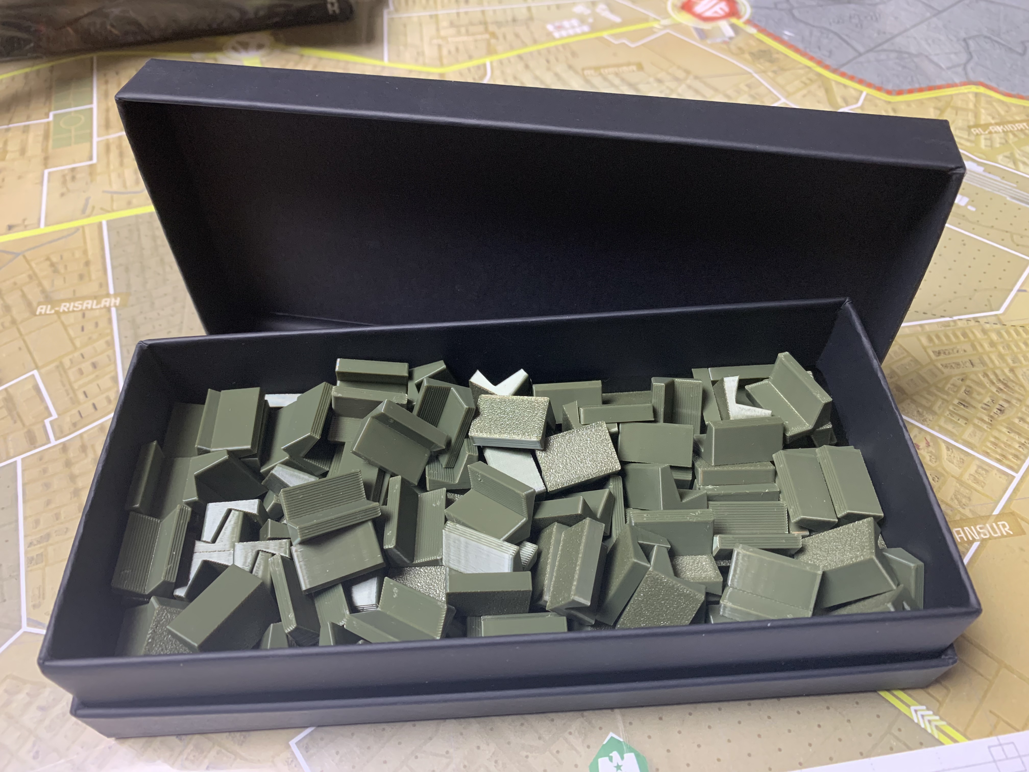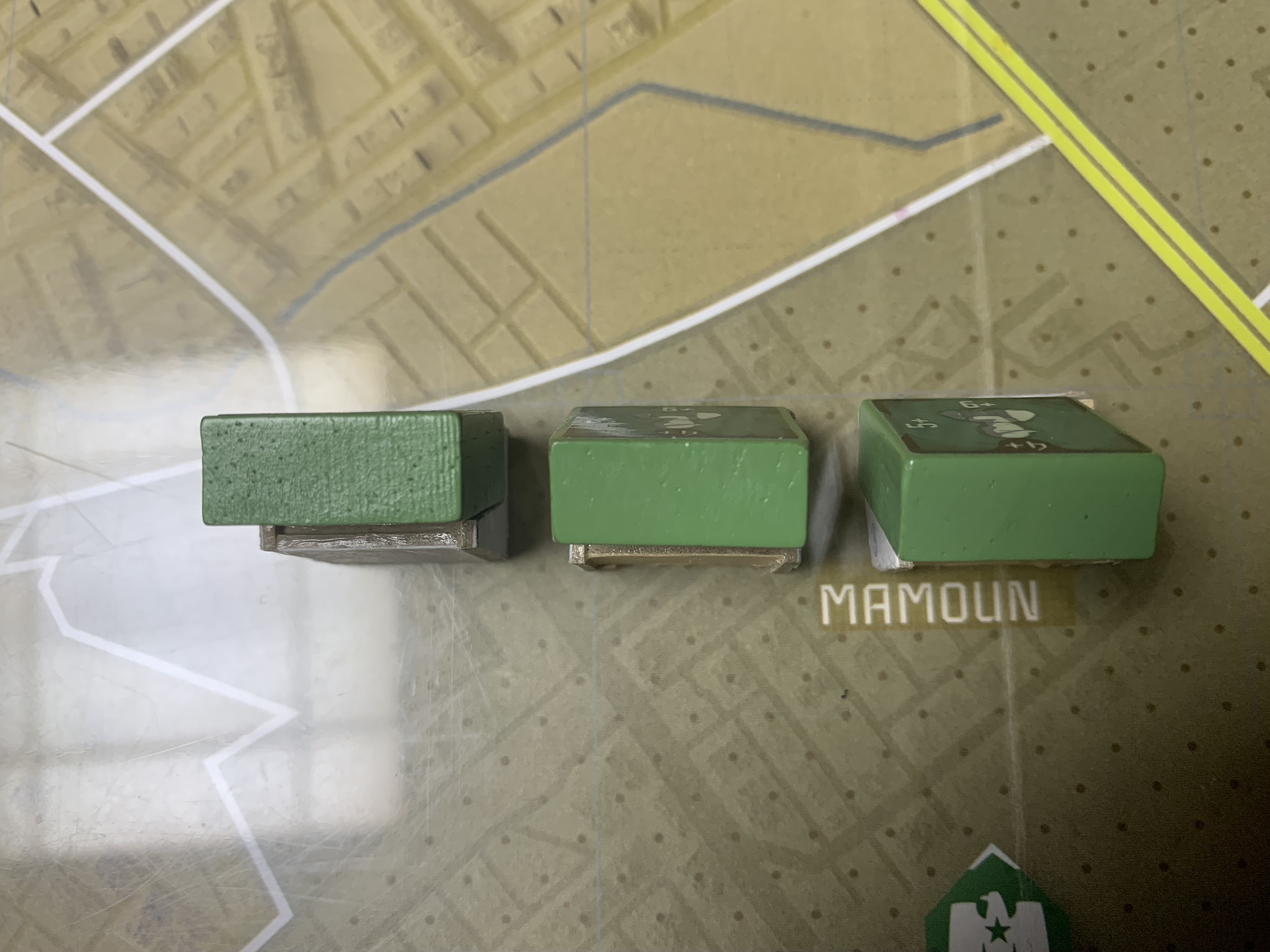 블럭을 가지고 놀 수 있는 워게임들이 꽤나 많다. 'Hammer of the Scots'처럼 큰 블럭을 주로 사용하는 컬럼비아 퍼블리셔도 있고, GMT가 그나마 표준이라 해야 하나?(뭐 제일 많이 만들어 내니까) 적당한 싸이즈도 있고, 아주 작은 블럭을 사용하는 게임들도 있다. 문제는 셋팅을 하고 플레이를 하다 보면 블럭 정보를 봐야 하는데, 보통 탁자높이가 760mm 정도 되고, 일반 앉은 키 74정도로 아래를 내려다 보는 각도는 약 36도 정도가 된다. 큰 블럭(24mm)을 사용하는 게임은 큰 무리 없이 볼 수 있지만, 15mm짜리 블럭 정도만 되어도 거의 잘 보이지 않는다.